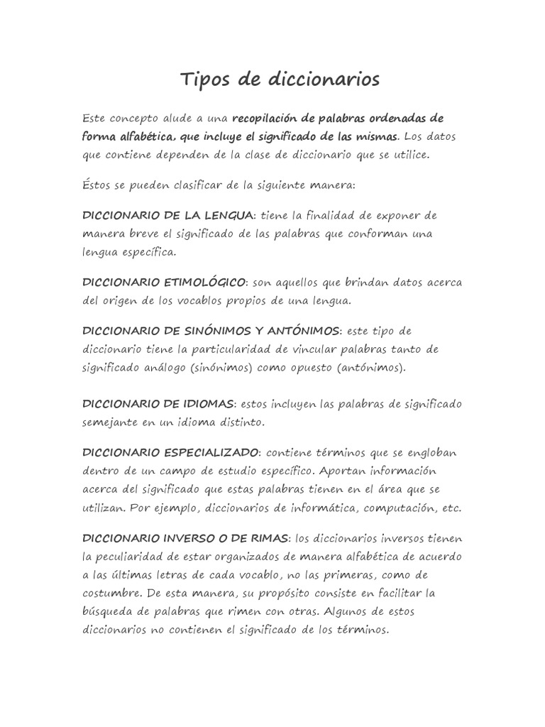 Tipos de diccionarios