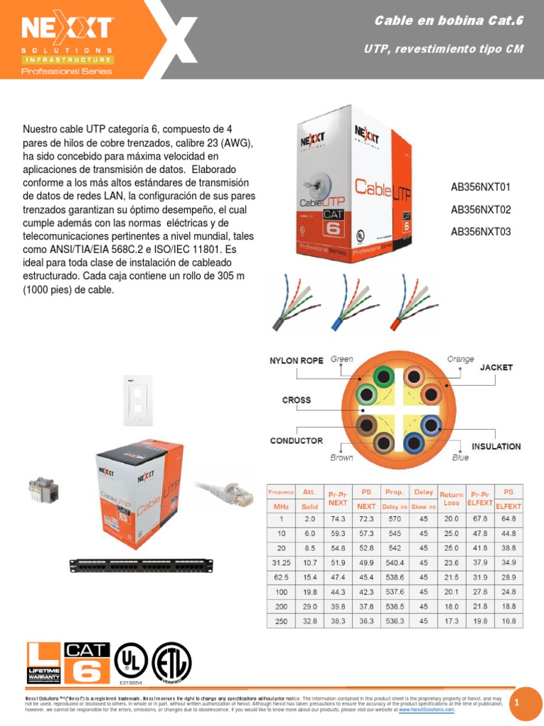 Nuestro cable UTP categoría 6, compuesto de 4