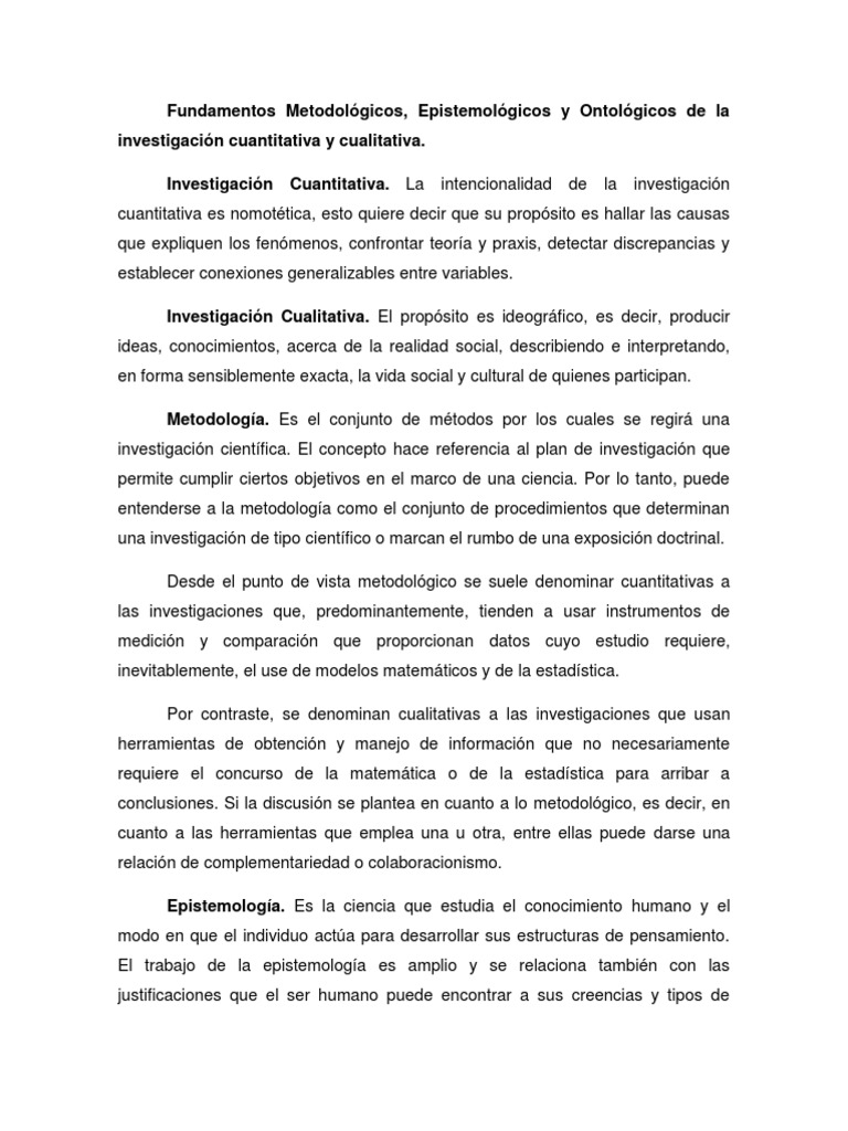 Fundamentos Metodológicos, Epistemológicos y Ontológicos de la