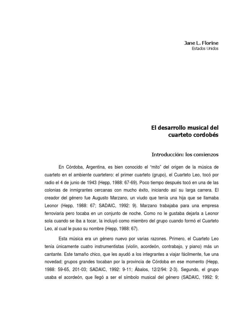 “Tradición e innovación en el cuarteto cordobés”. Fotocopia.