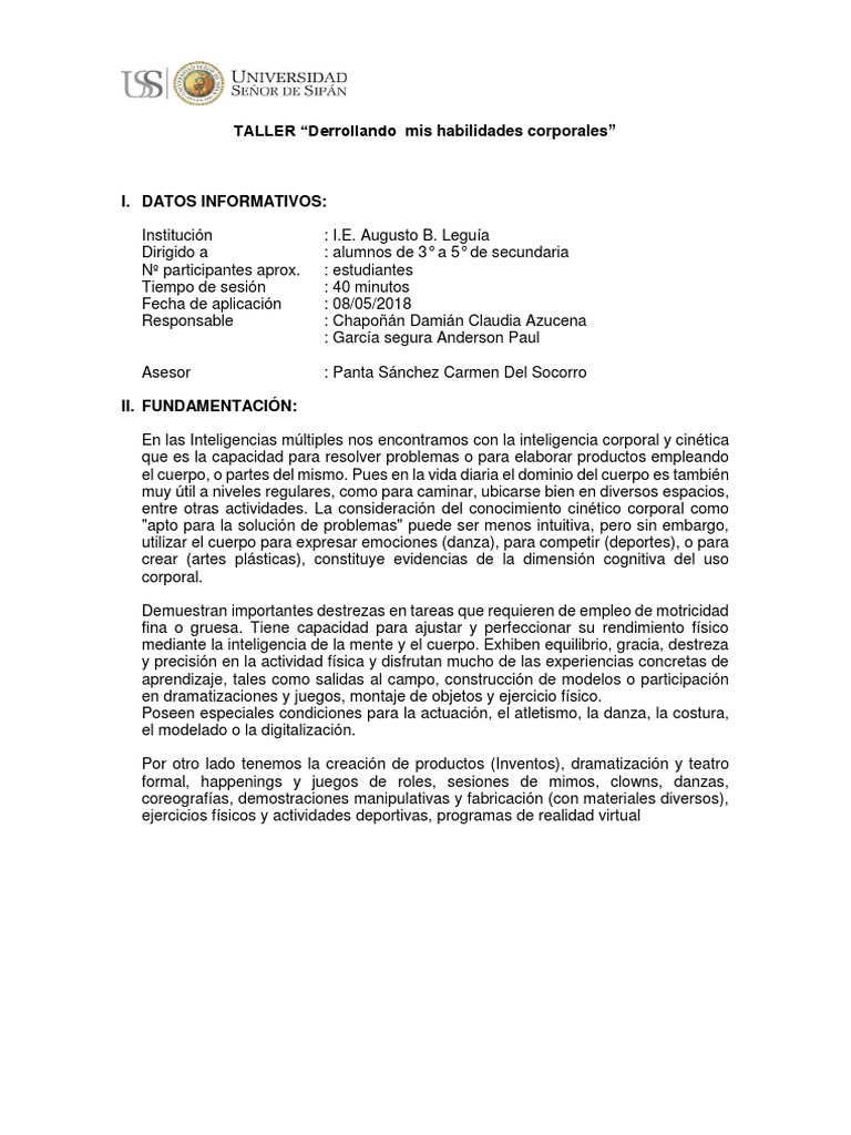 TALLER “Derrollando mis habilidades corporales”