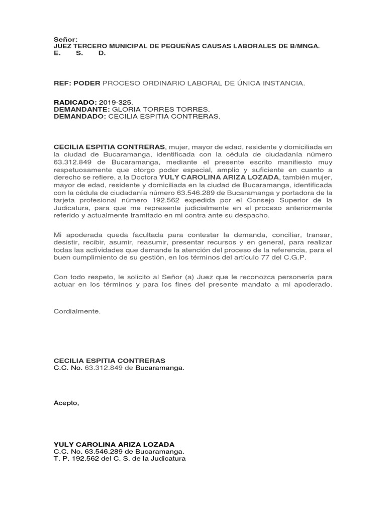 63.312.849 de Bucaramanga, mediante el presente escrito manifiesto muy