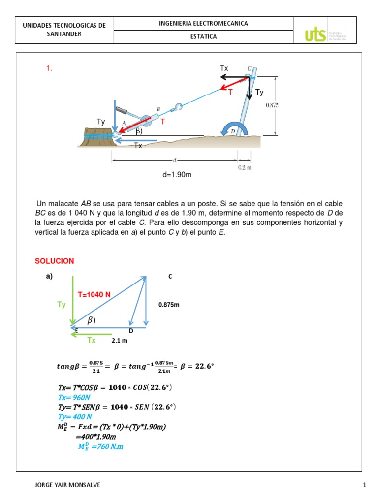Tx= T*COS 𝜷 = 𝟏𝟎𝟒𝟎 ∗ 𝑪𝑶𝑺(𝟐𝟐. 𝟔°)