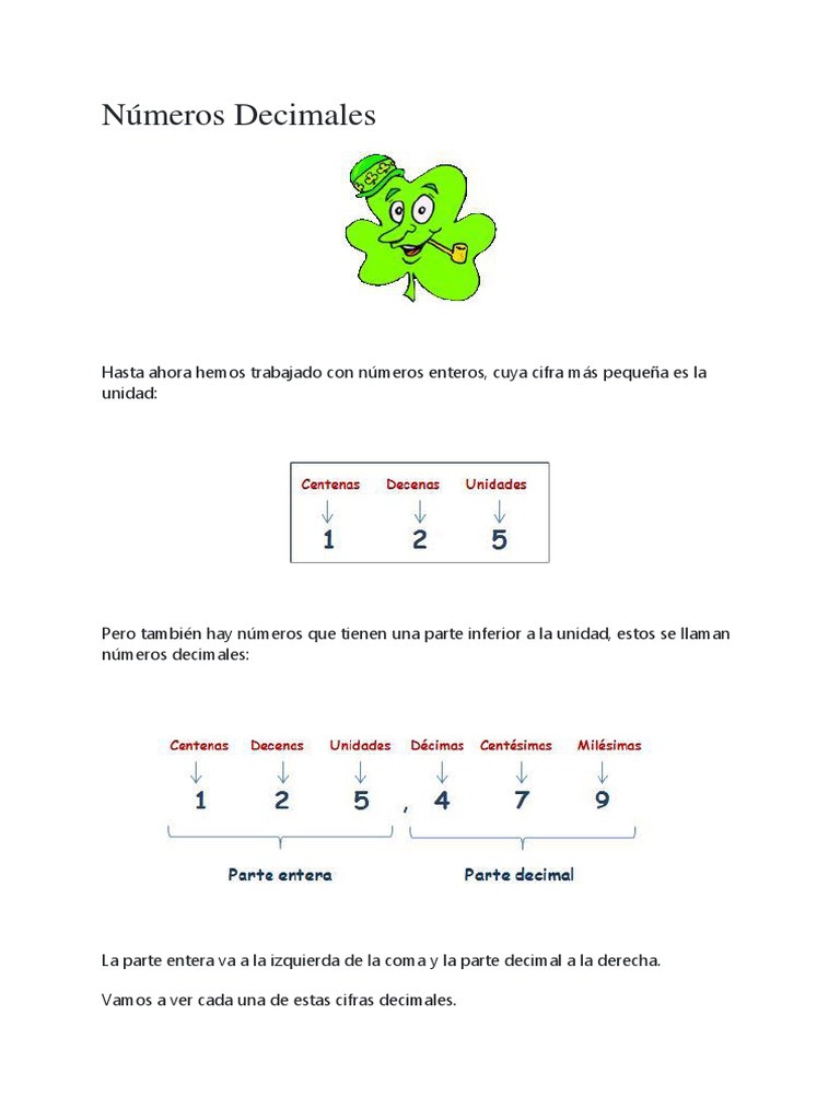 Hasta ahora hemos trabajado con números enteros, cuya cifra más pequeña es la
