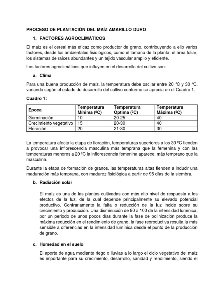 El maíz requiere preferentemente suelos neutros, pudiendo desarrollarse en suelos