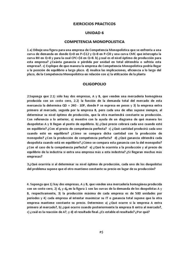 en equilibrio? ¿Con el precio de competencia perfecta? c) ¿Qué cantidad producirá cada uno
