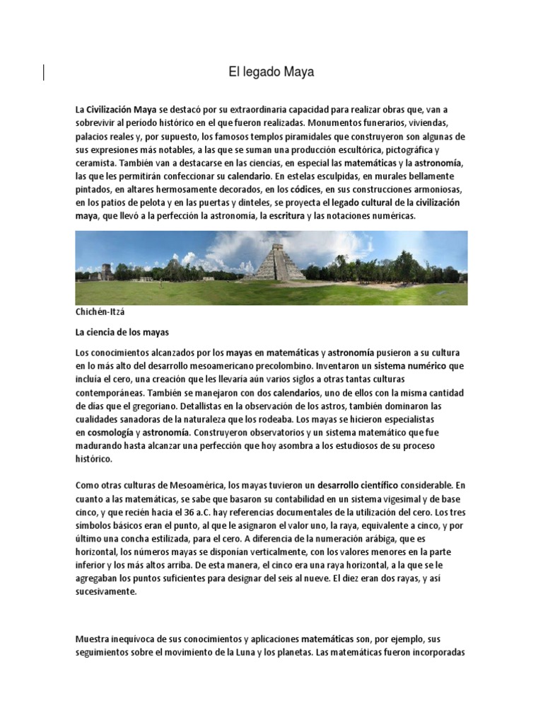 maya, que llevó a la perfección la astronomía, la escritura y las notaciones numéricas.
