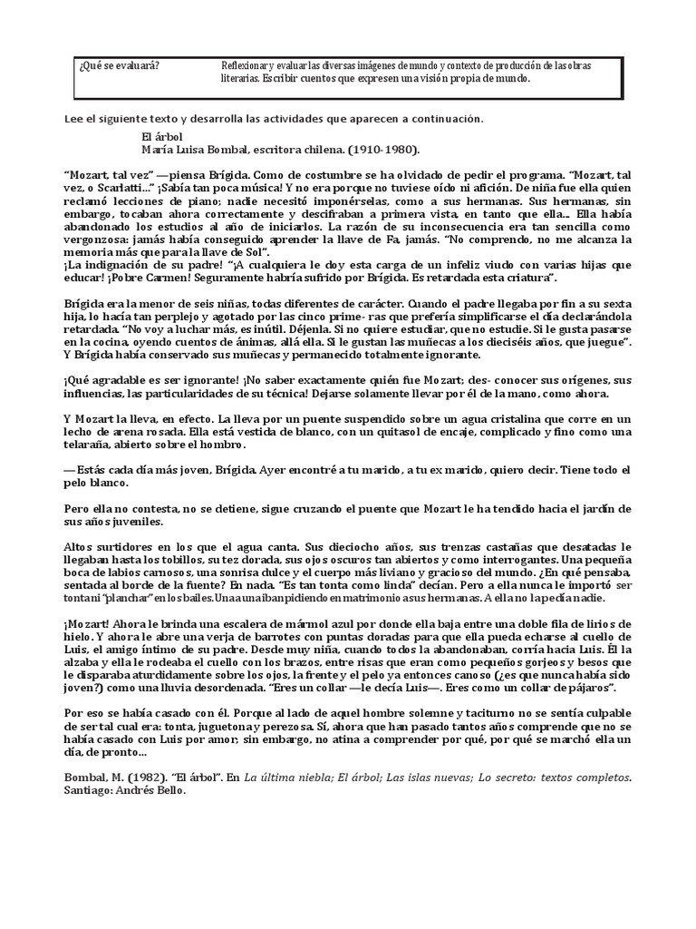 Bombal, M. (1982). “El árbol”. En La última niebla; El árbol; Las islas nuevas; Lo secreto: textos completos.