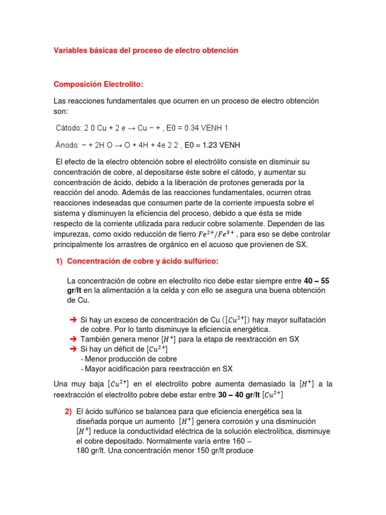 Variables básicas del proceso de electro obtención