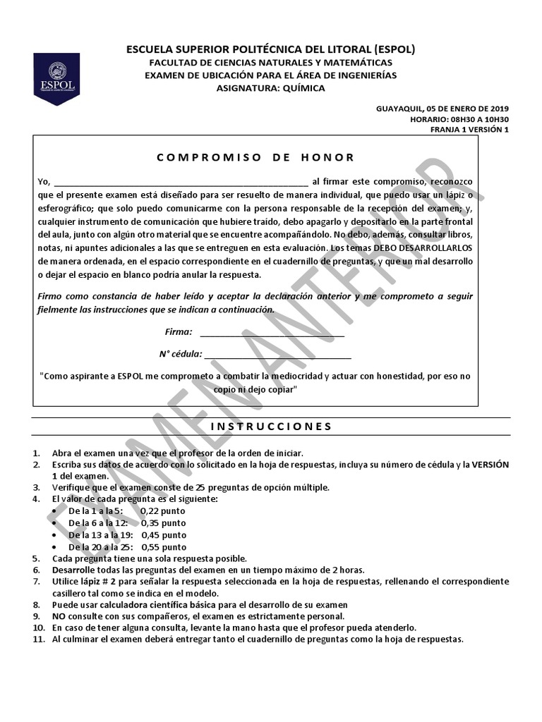 que el presente examen está diseñado para ser resuelto de manera individual, que puedo usar un lápiz o