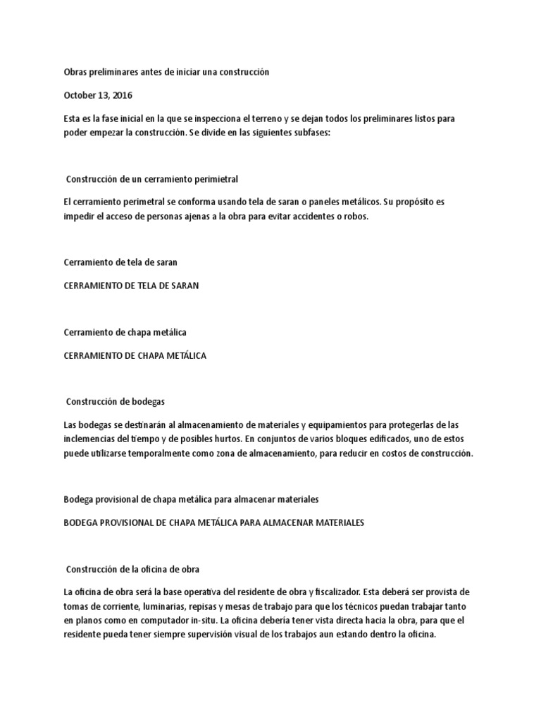poder empezar la construcción. Se divide en las siguientes subfases: