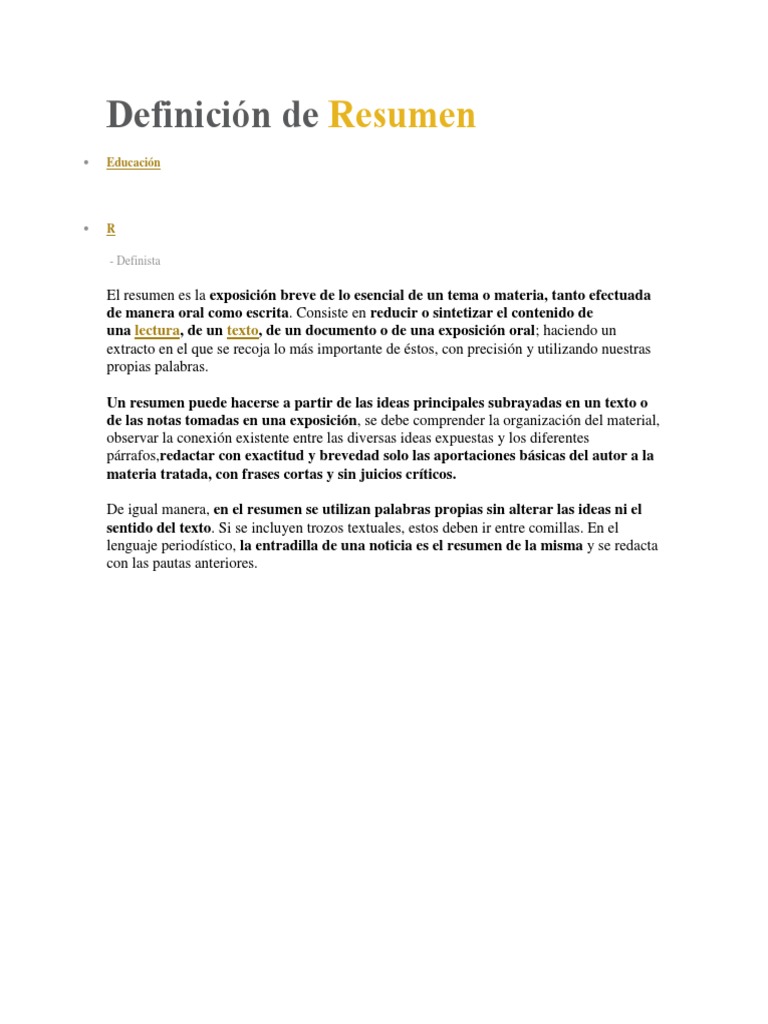 Definición de Resumen