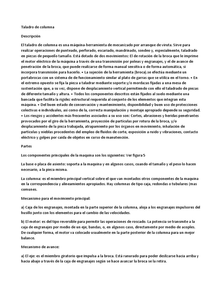 El taladro de columna es una máquina-herramienta de mecanizado por arranque de viruta. Sirve para
