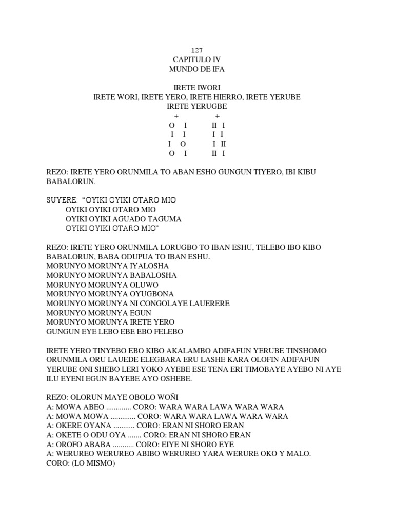 Pero lfá Dele hizo osode, y le vino el Odu Irete-Yero, el cual le mandó a cubrir todas sus tierras y
