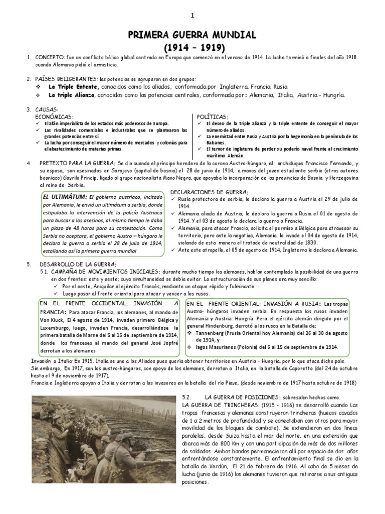 1. CONCEPTO: fue un conflicto bélico global centrado en Europa que comenzó en el verano de 1914. La lucha terminó a finales del año 1918.