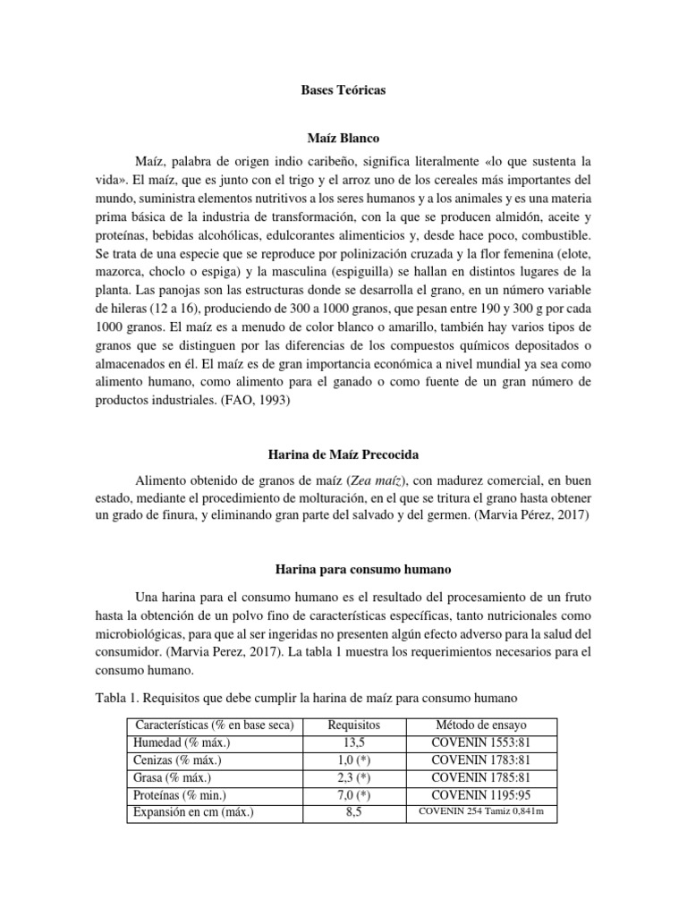 Tabla 1. Requisitos que debe cumplir la harina de maíz para consumo humano