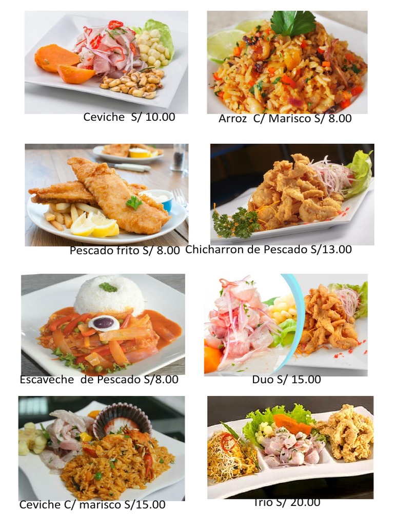 Ceviche S/ 10.00 Arroz C/ Marisco S/ 8.