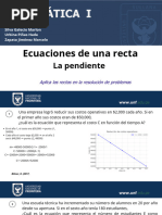 La pendiente representa el ángulo de la recta, para este caso será el ángulo de