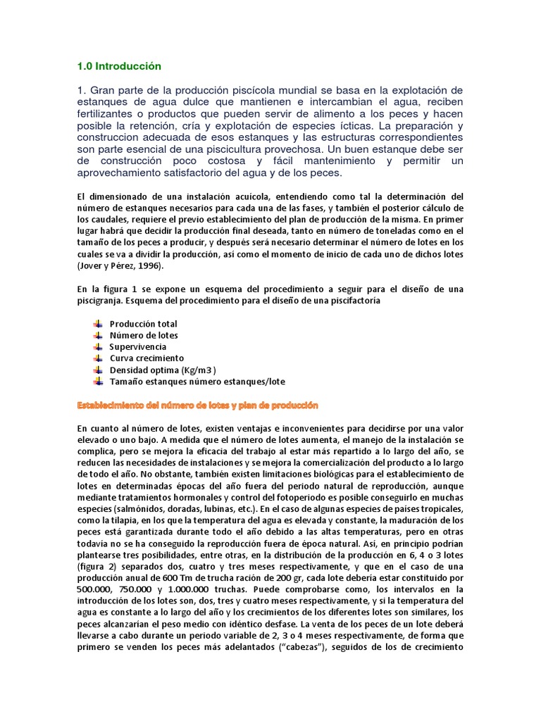piscigranja. Esquema del procedimiento para el diseño de una piscifactoría