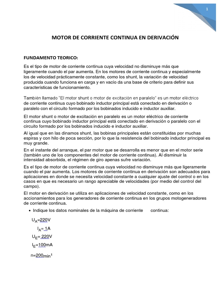 MOTOR DE CORRIENTE CONTINUA EN DERIVACIÓN