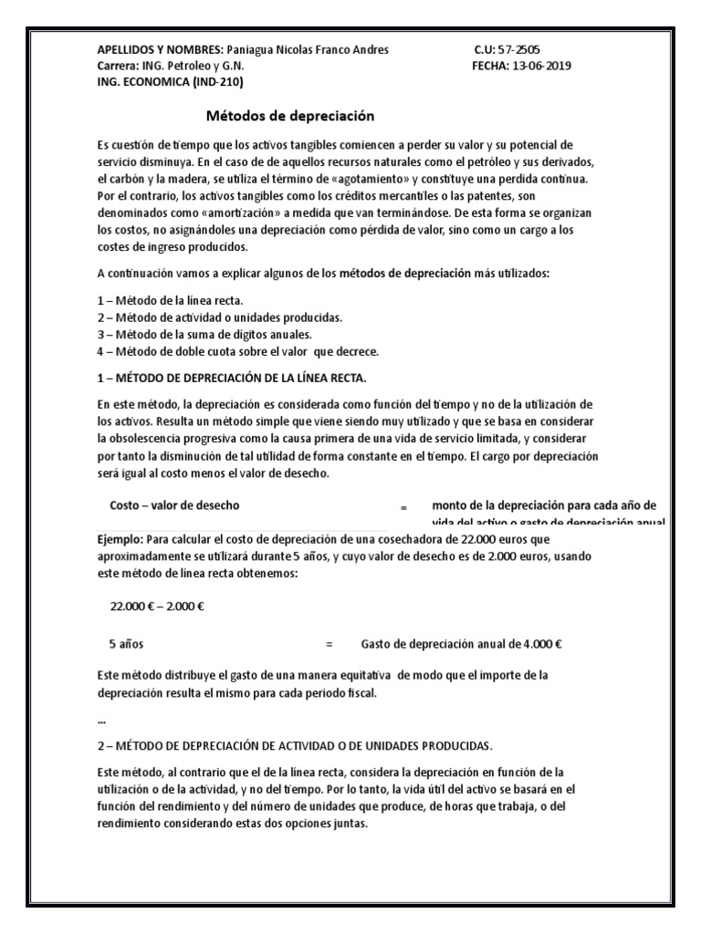 como el de línea recta, suma de los dígitos de los años, unidades de producción u horas de trabajo. En la
