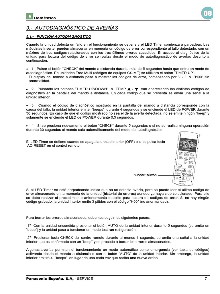 autodiagnóstico. En unidades Free Multi (códigos de equipos CS-ME) se utilizará el botón “TIMER UP”.