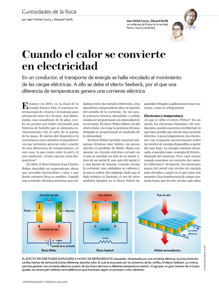 sinski, una canadiense de 16 años, reci- resulta ser proporcional a la intensidad de ¿A qué se debe el efecto Peltier? En un