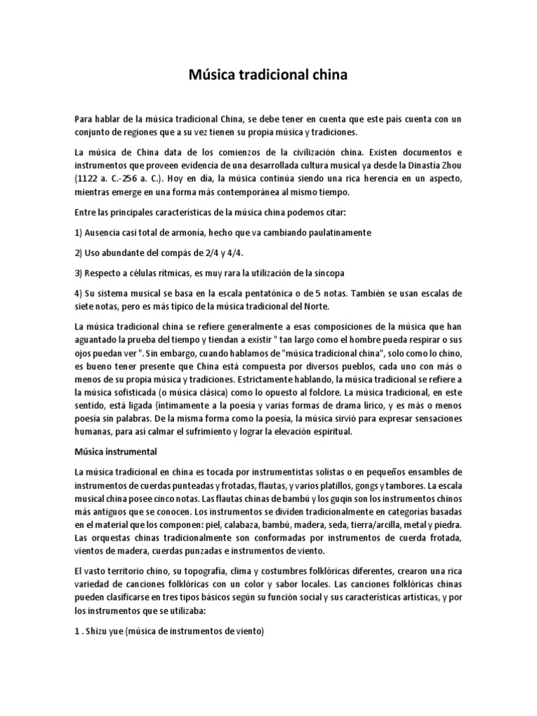 (1122 a. C.-256 a. C.). Hoy en día, la música continúa siendo una rica herencia en un aspecto,
