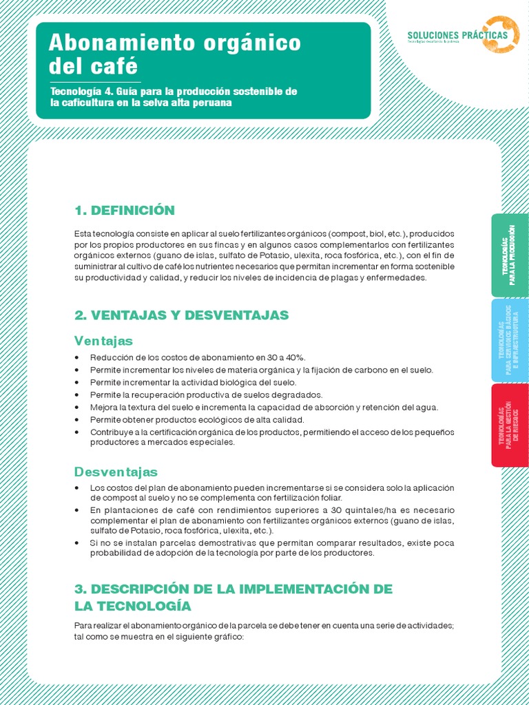 Esta tecnología consiste en aplicar al suelo fertilizantes orgánicos (compost, biol, etc.), producidos