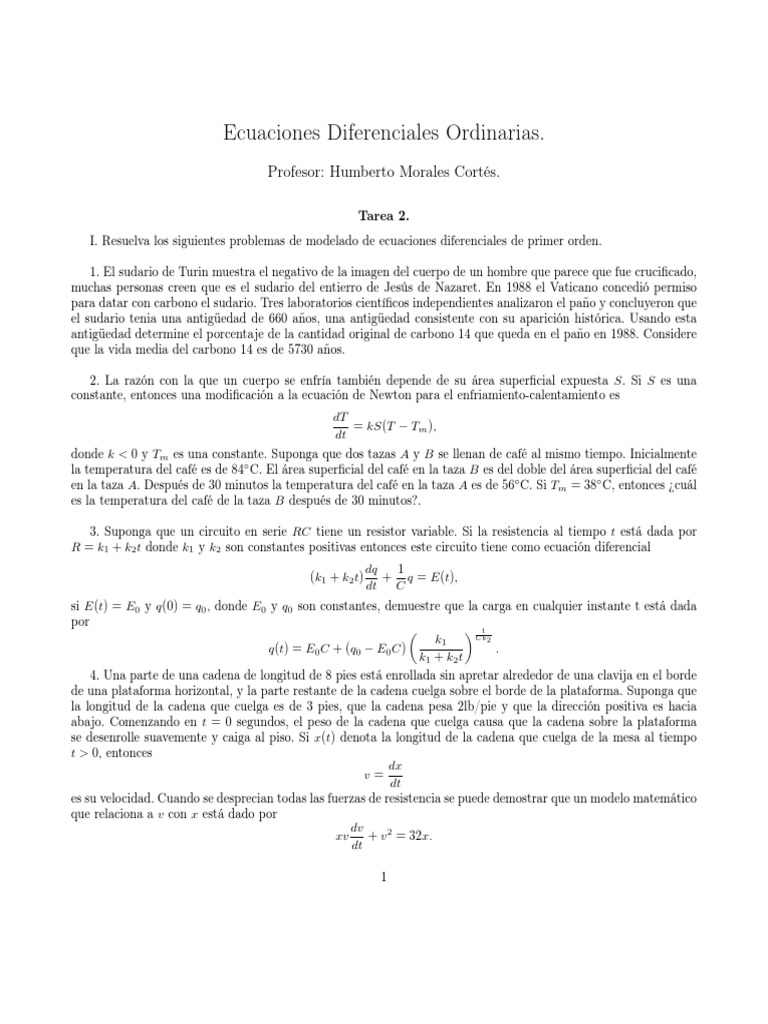 I. Resuelva los siguientes problemas de modelado de ecuaciones diferenciales de primer orden.