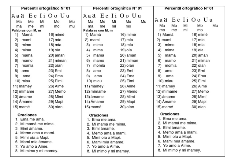 Percentil ortográfico N° 01 Percentil ortográfico N° 01 Percentil ortográfico N° 01