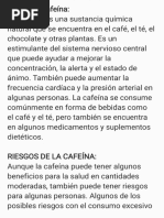 La cafeína es un estimulante del sistema nervioso central que, al consumirla, pasa rápidamente a