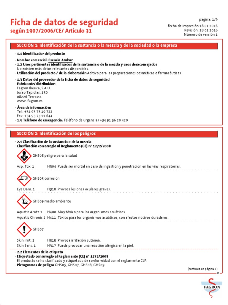 según 1907/2006/CE/ Artículo 31 Revisión: 18.01.2016