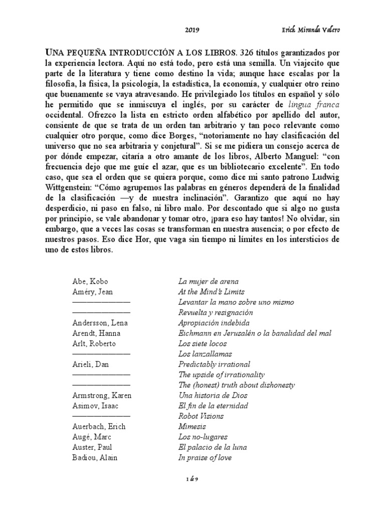 UNA PEQUEÑA INTRODUCCIÓN A LOS LIBROS. 326 títulos garantizados por
