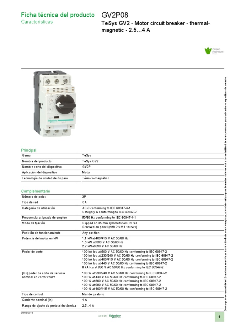 Ficha técnica del producto GV2P08