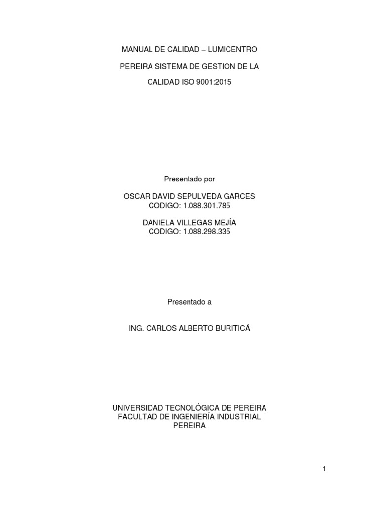 Manual de Calidad ISO 9001:2015 Lumicentro