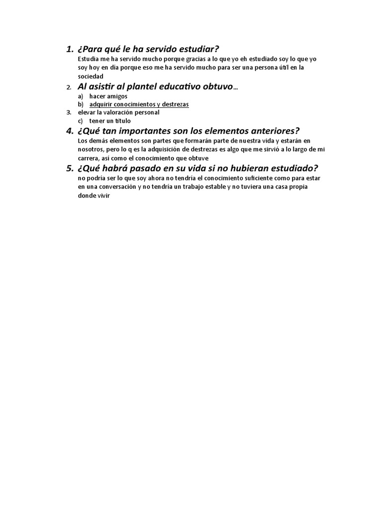 1. ¿Para qué le ha servido estudiar?