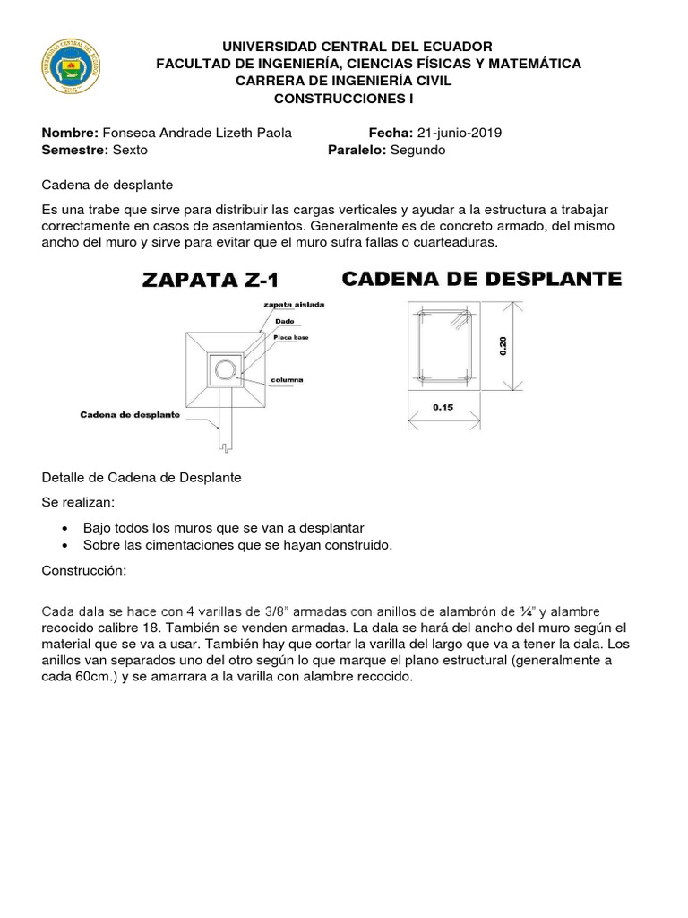 correctamente en casos de asentamientos. Generalmente es de concreto armado, del mismo