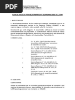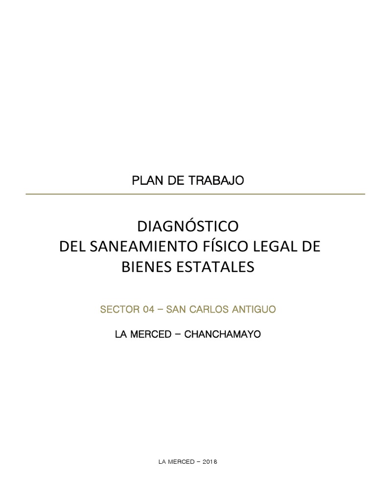El Plan de Trabajo denominado DIAGNÓSTICO DEL SANEAMIENTO FÍSICO LEGAL