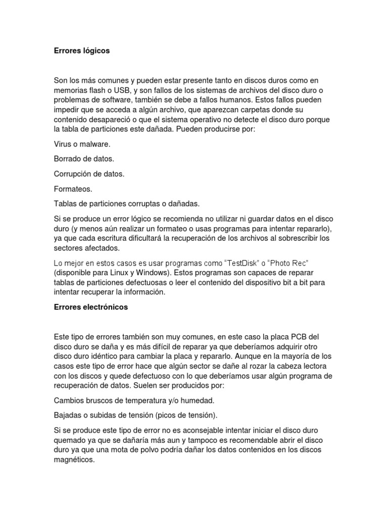 Si se produce un error lógico se recomienda no utilizar ni guardar datos en el disco