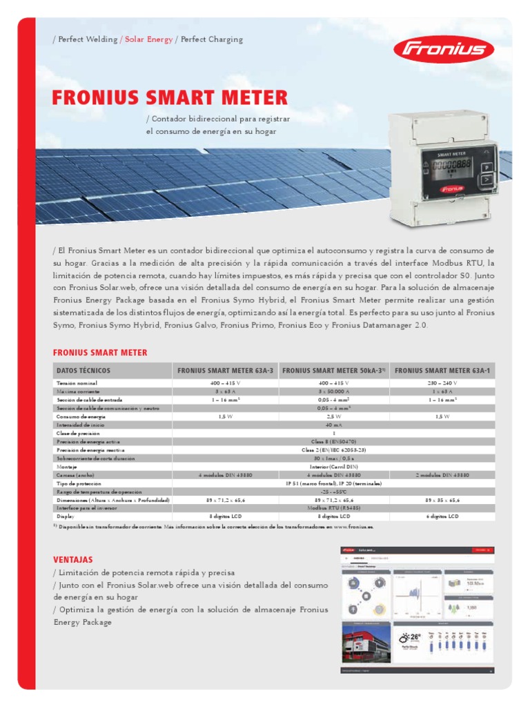 Fronius Energy Package basada en el Fronius Symo Hybrid, el Fronius Smart Meter permite realizar una gestión
