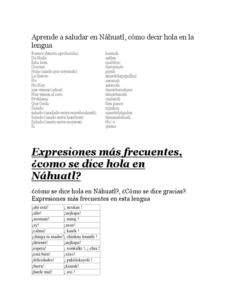 ¿cómo se dice hola en Náhuatl?, ¿Cómo se dice gracias?.