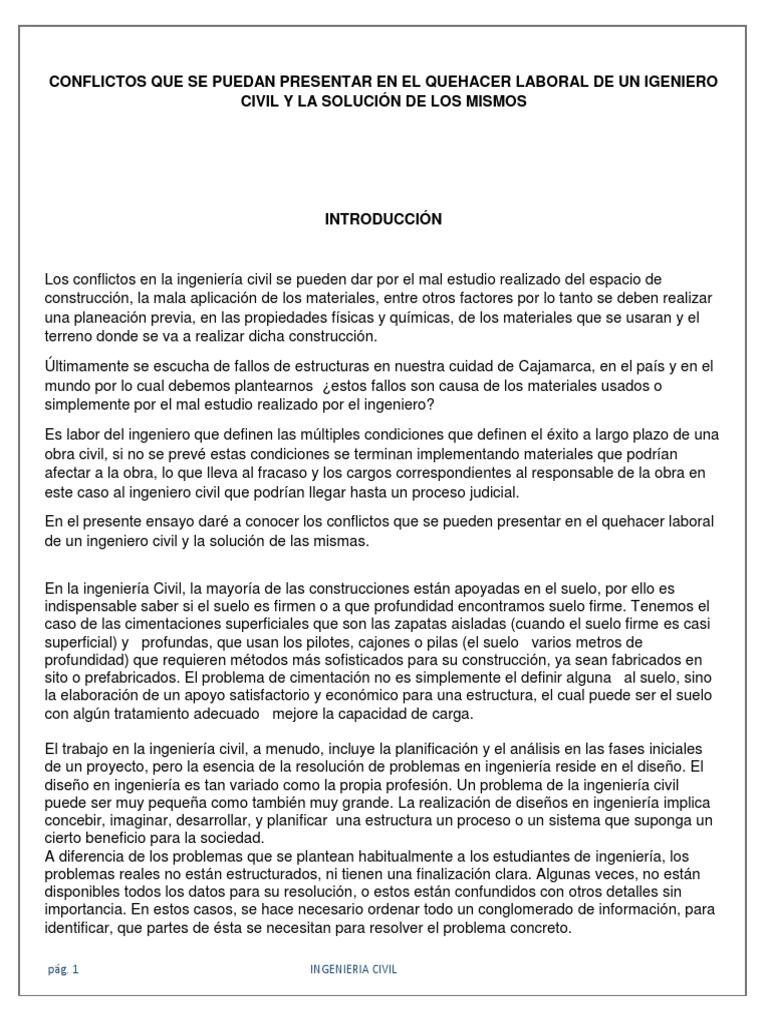 de un ingeniero civil y la solución de las mismas.