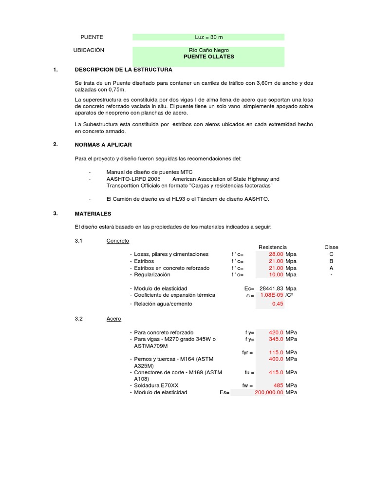 Se trata de un Puente diseñado para contener un carriles de tráfico con 3,60m de ancho y dos