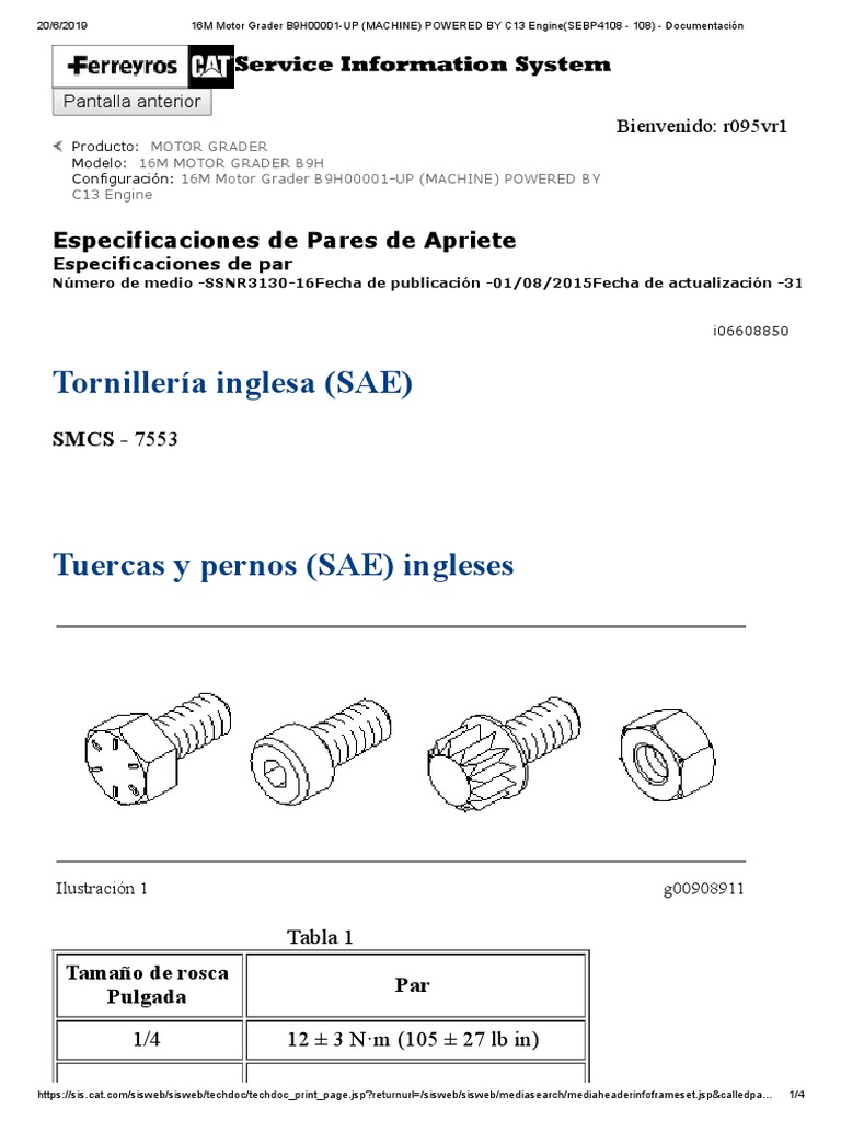 Copyright 1993 - 2019 Caterpillar Inc. Thu Jun 20 2019 12:12:23 GMT-0500 (hora estándar de