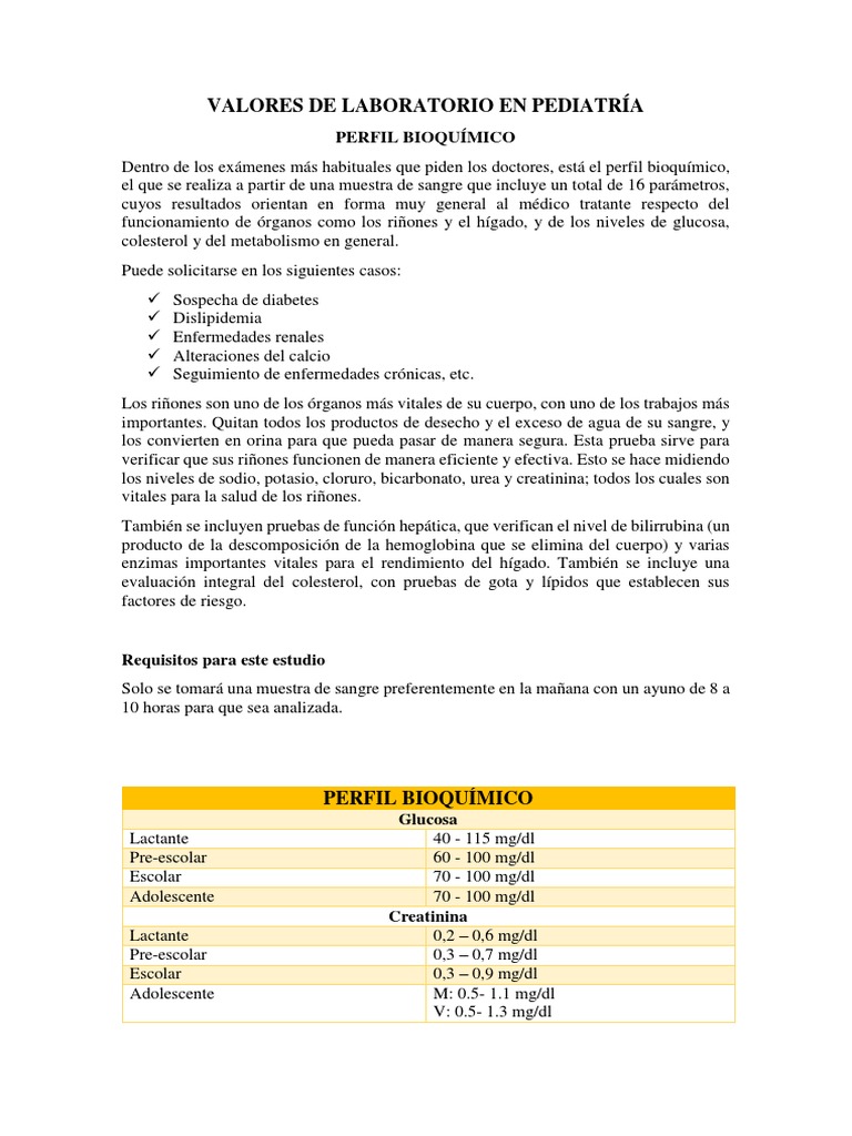 VALORES DE LABORATORIO EN PEDIATRÍA