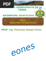 Tiempo geológico: tiempo transcurrido desde que se formo Arqueozoica, Paleozoica, Mesozoica y Cenozoica.