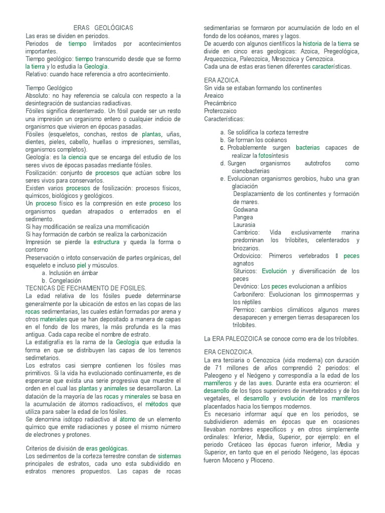la tierra y lo estudia la Geología. Cada una de estas eras tienen diferentes características.