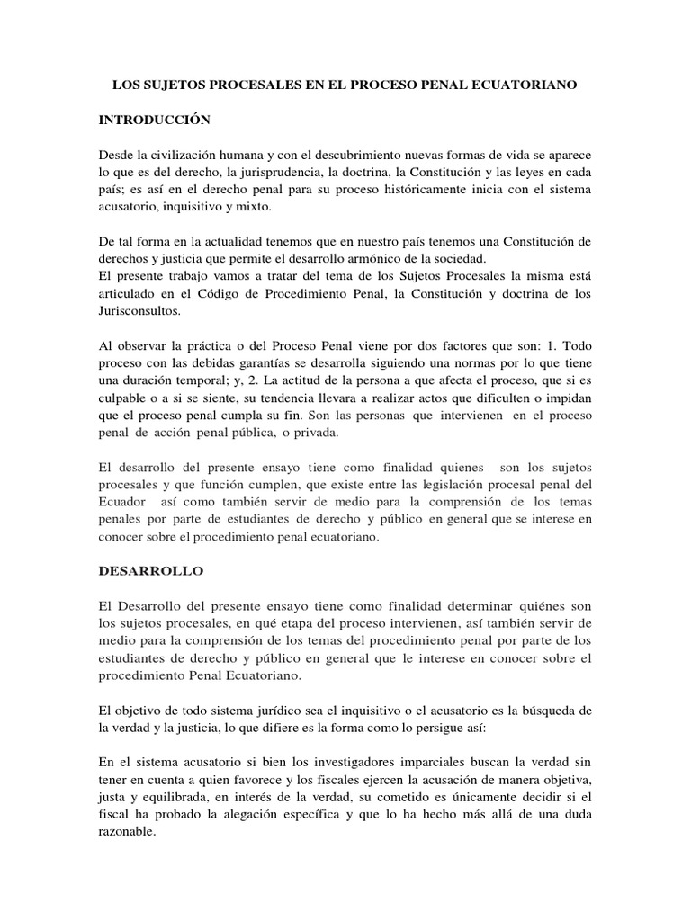 LOS SUJETOS PROCESALES EN EL PROCESO PENAL ECUATORIANO