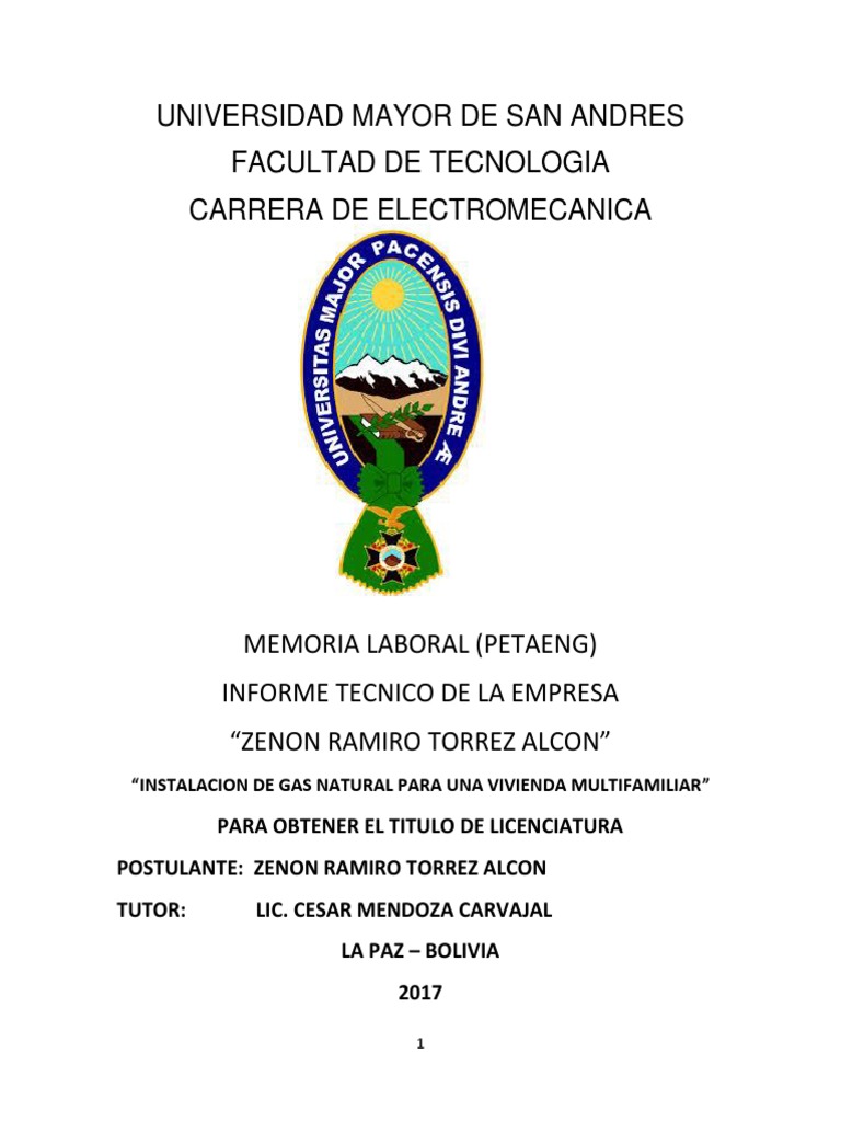 La presente Memoria Laboral “Informe Tecnico de la Empresa ZENON RAMIRO